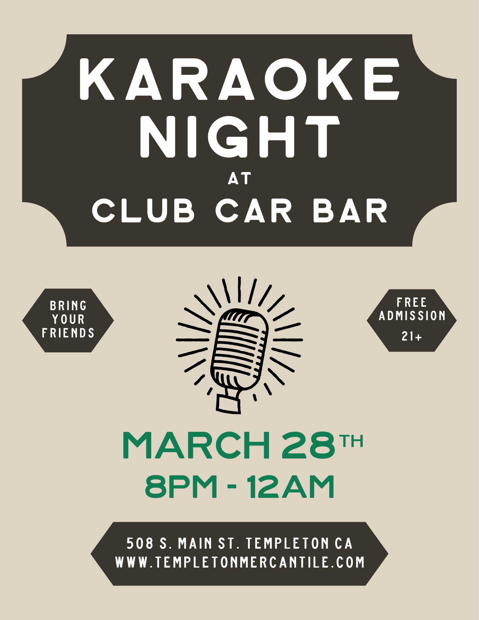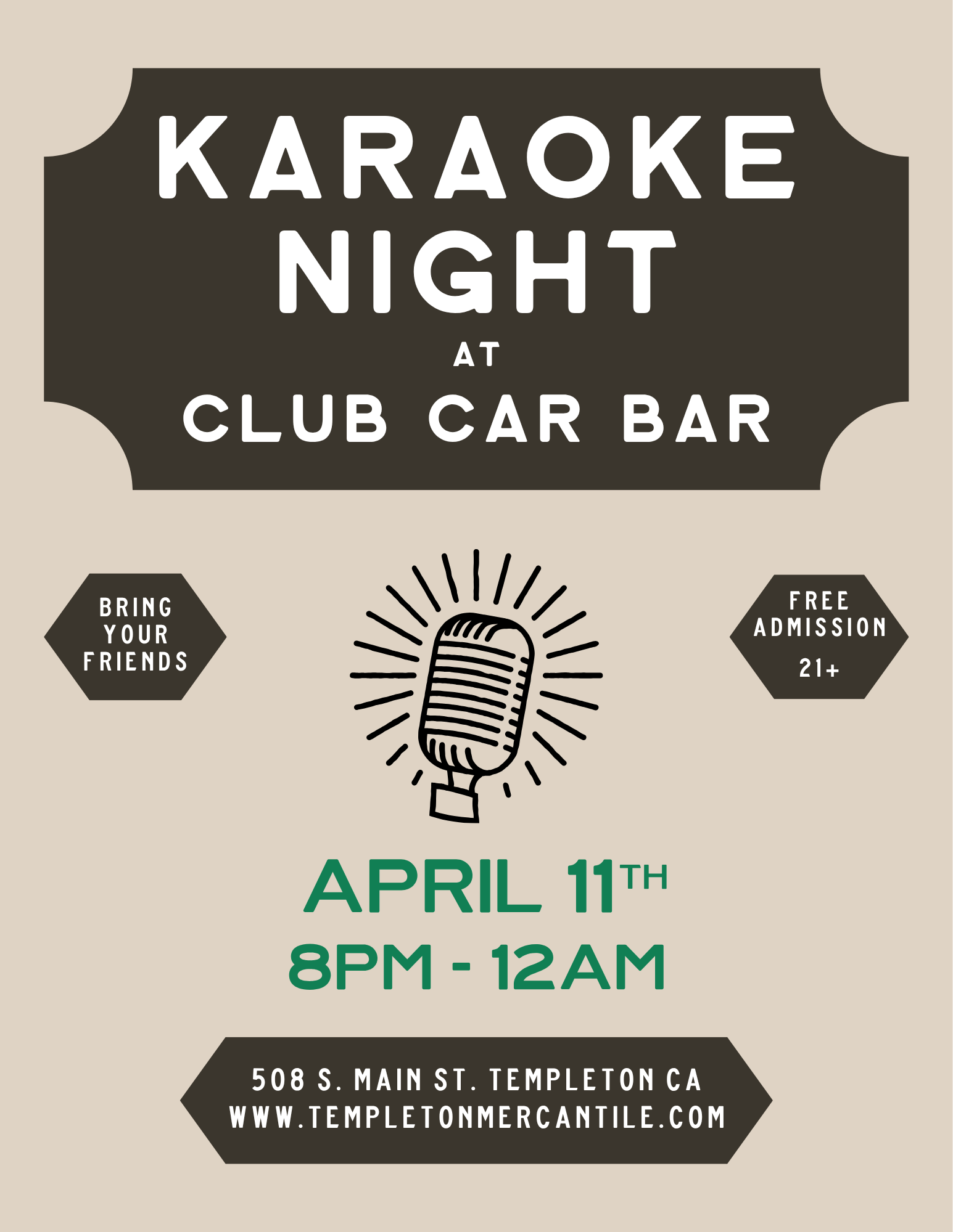 Join us for our monthly Karaoke Night at Club Car Bar!